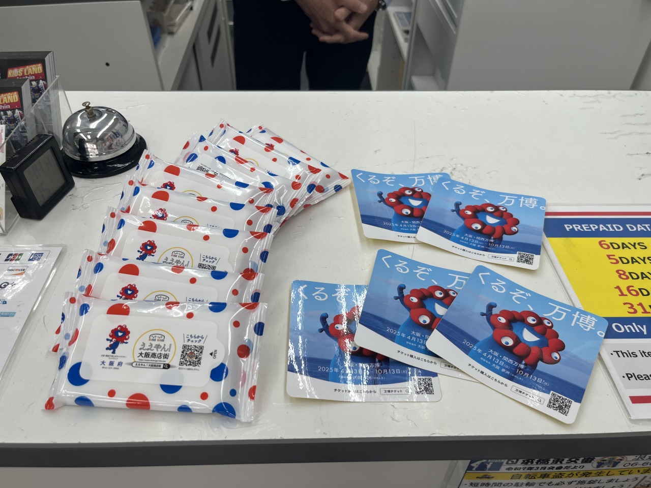 のぼり旗の掲出は約2ヵ月間でしたが、万博会期期間中は、いつも以上に外国人観光客も増えていたといいます。野村理事長によると、「海外の方が両替に訪れる日本橋総合案内所でも、ミャクミャクのウェットティッシュなどのグッズを配り、とても喜んでいただきました」。