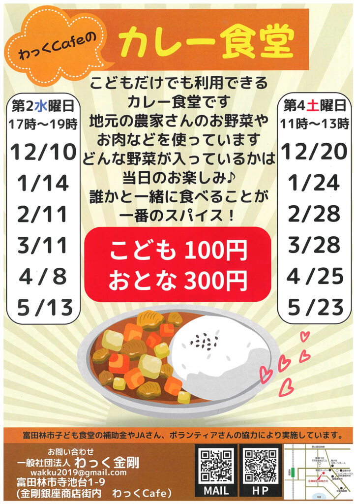 主なイベント:11:00〜 カレー食堂オープン (※こども100円 おとな300円)