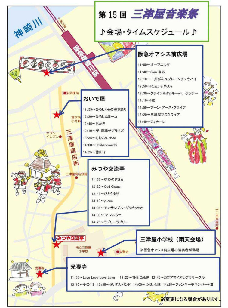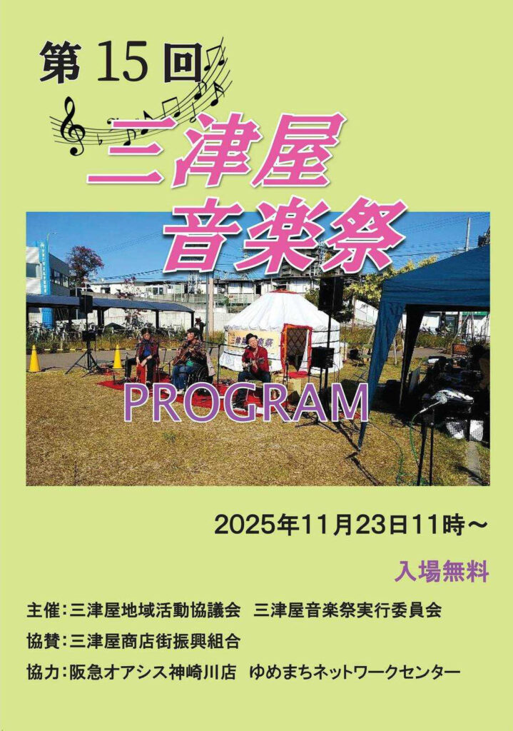11月23日(日・祝)、阪急神崎川駅の近くにある三津屋商店街では、様々なジャンルのアーティストが三津屋のまちを音色で彩る「第15回 三津屋音楽祭」が開催されます!