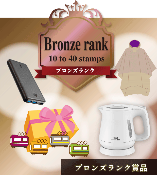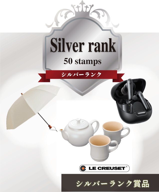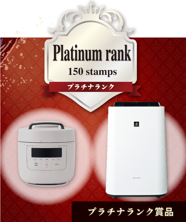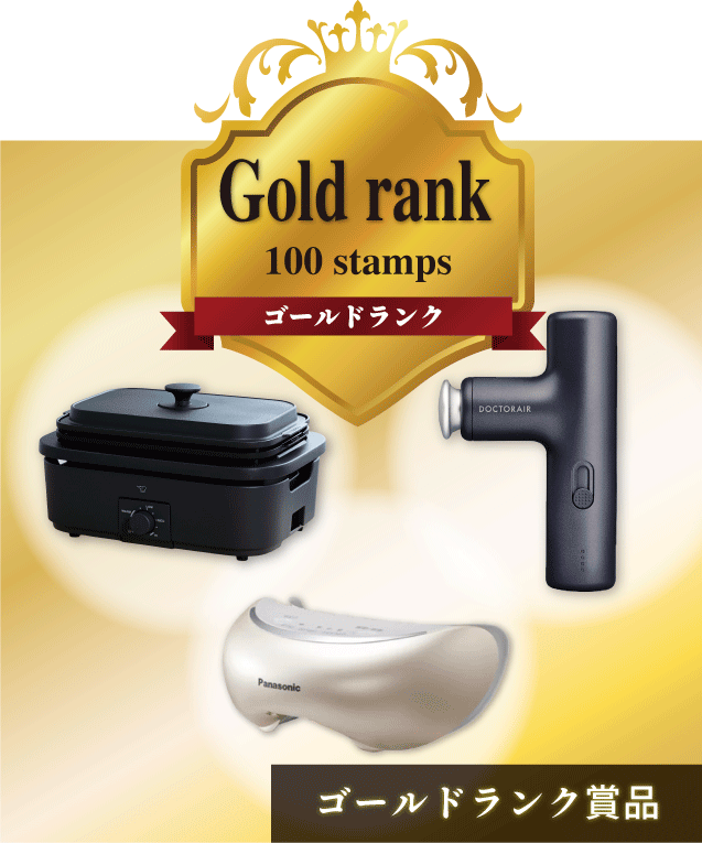 ランクアップコースは10個以上のスタンプが集まりましたら、トップ画面の「特典」より賞品に応募してください。獲得したスタンプ数に応じて応募できる賞品が増えます。希望商品をめざして、スタンプを集めましょう!
